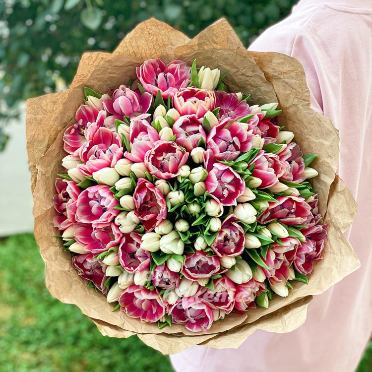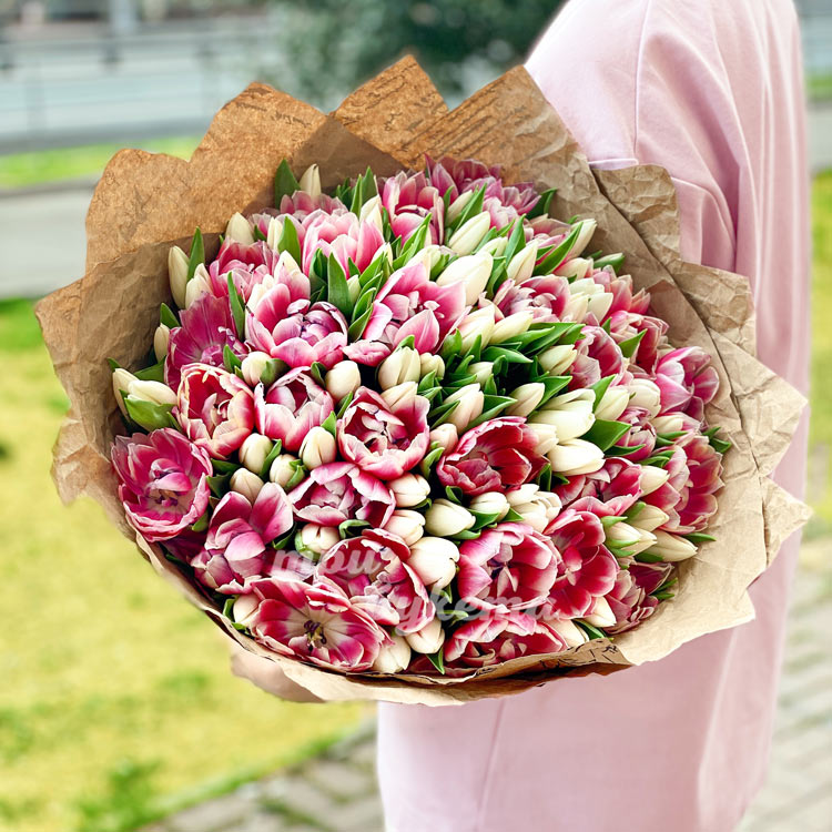 - Фиолетовые и белые тюльпаны, 101 шт.