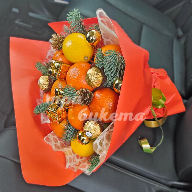 Букет апельсинов и новогодний декор