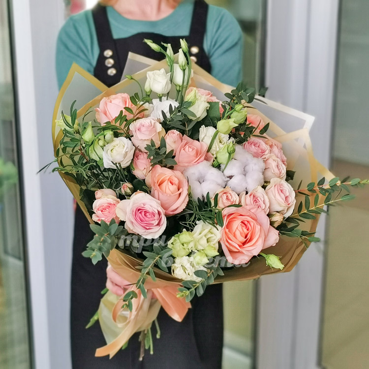 Букет эустом и светло-розовых роз