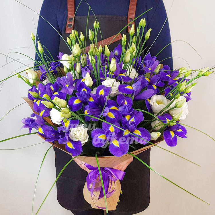 Букет из 25 ирисов и 10 эустом