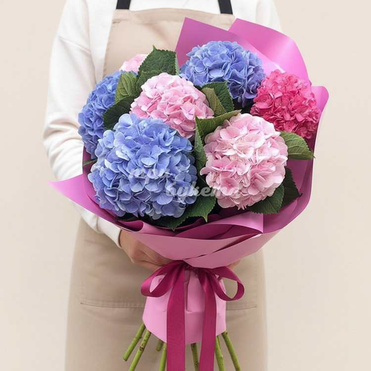 Букет из 7 разноцветных гортензий
