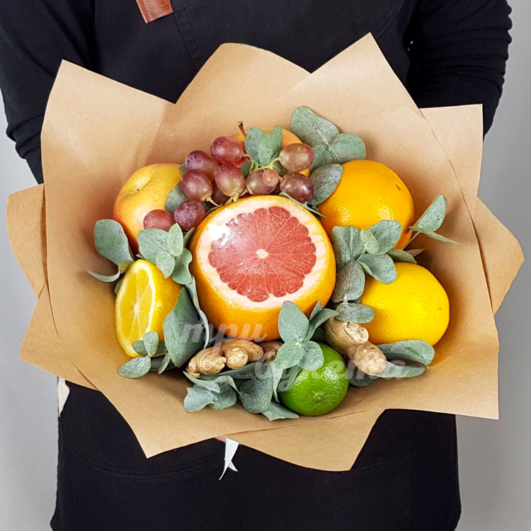 Букет из цитрусов и яблок