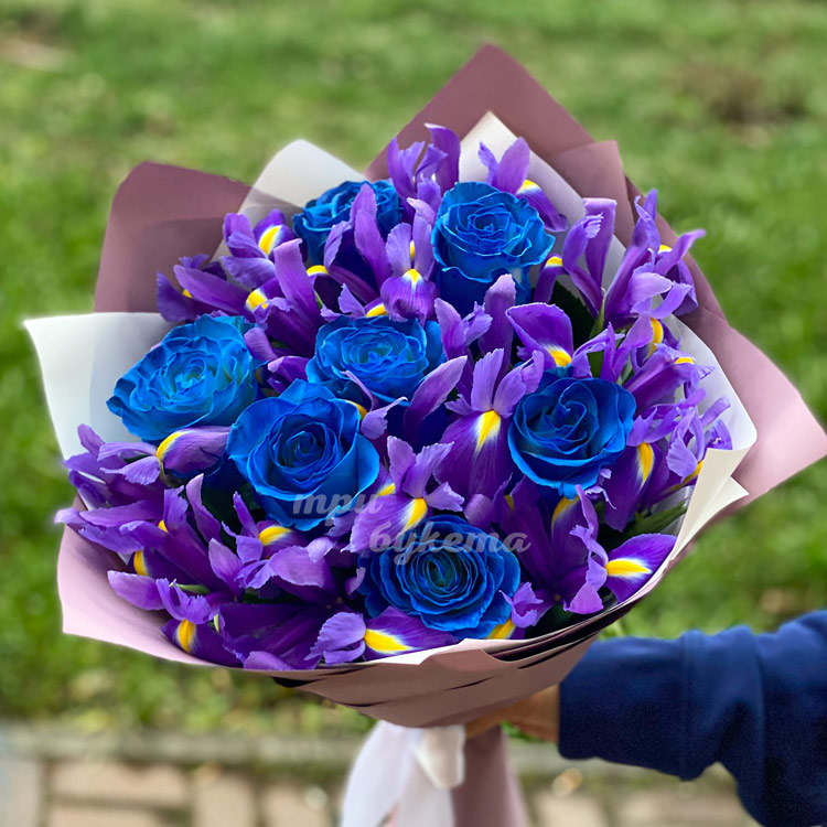 Букет из синих роз и ирисов