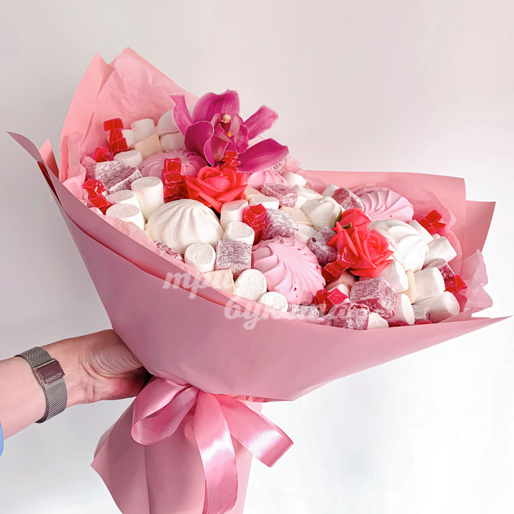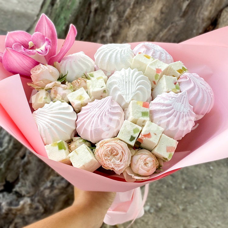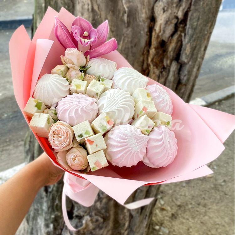 Букет из зефира и орхидеи