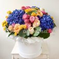Гортензии и розы в коробке
