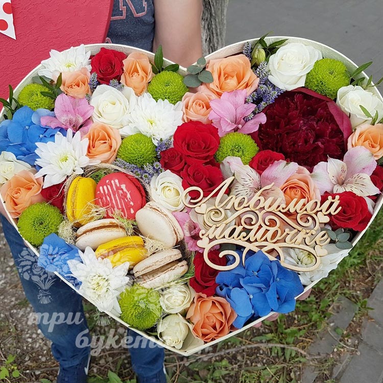 Коробка-сердце с цветами для мамы