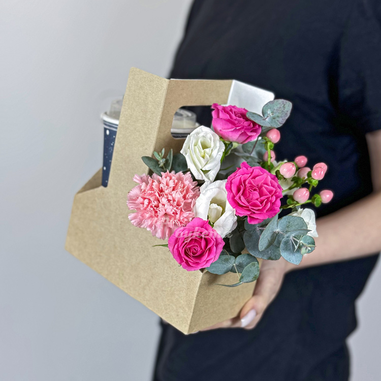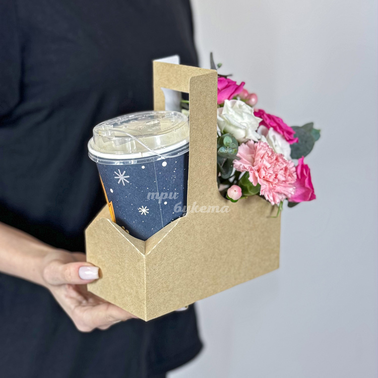 Коробочка с кофе, розами и гвоздикой