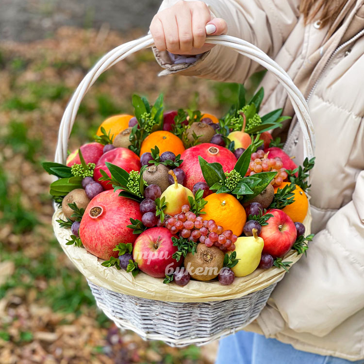 Корзина гранатов, винограда и яблок