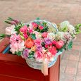Корзинка с розой, эвкалиптом и брунией