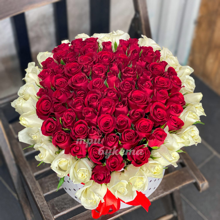 Красные и белые розы в коробке