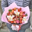 Набор из мягкой игрушки, шариков, конфет и 15 красных роз