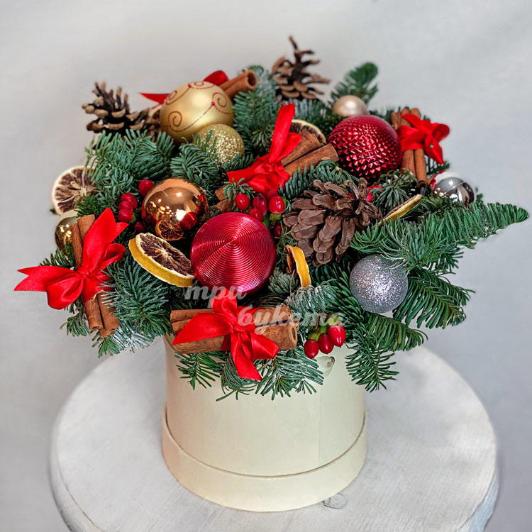 Новогодняя коробка из шишек