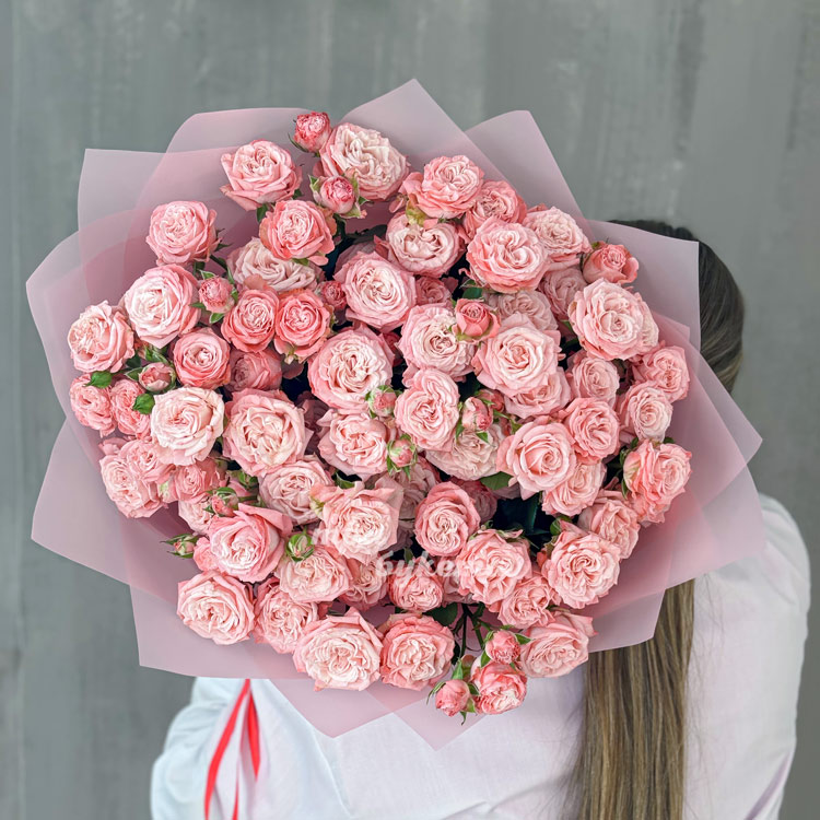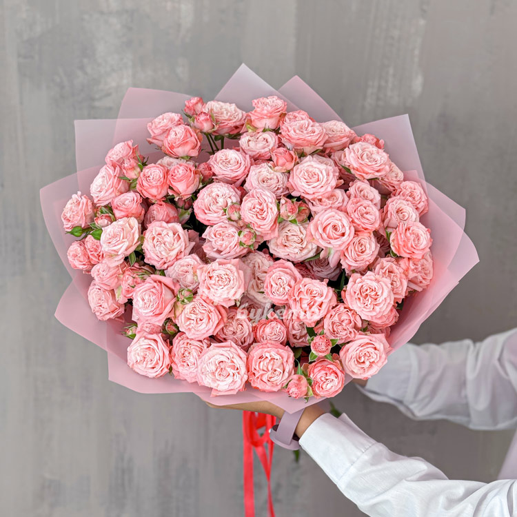 Розовый букет из 19 кустовых пионовидных роз