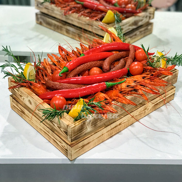 Ящик раков, колбасок и перцев